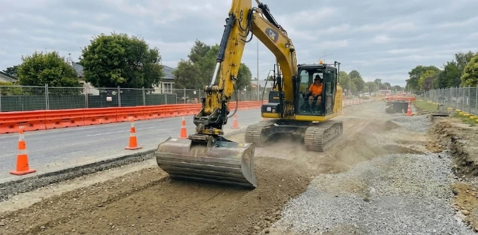 Application des couches de roulement (enrobés, bétons), pose des bordures, caniveaux et réalisation des marquages au sol.